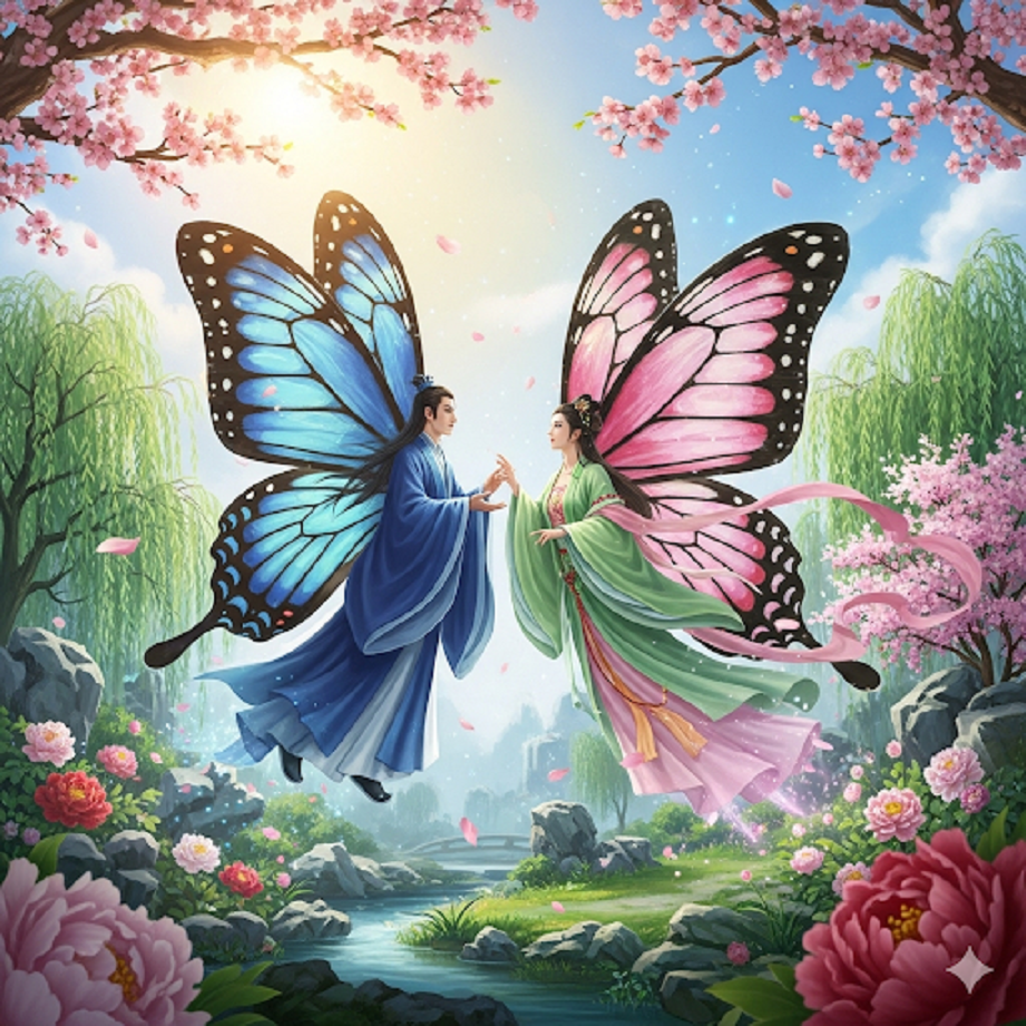 나비 연인(戀人) 이야기는 중국(中國)의 4대 민간전설(四大 民間傳說) 중 하나로, 서양(西洋)의 《로미오와 줄리엣》에 비견(比肩)될 만큼 유명(有名)합니다. 이 이야기(話)는 단순히 비극적(悲劇的)인 사랑을 넘어, 당시(當時) 사회(社會)의 봉건적(封建的)인 결혼 제도(結婚 制度)와 남녀 차별(男女 差別) 문제(問題)를 비판(批判)하는 내용(內容)을 담고 있습니다. 양산백(梁山伯)과 축영대(祝英臺)의 영혼(靈魂)이 나비(蝶)로 다시 만나는 결말(結末)은 그들의 사랑이 세속적(世俗的)인 제약(制約)을 초월(超越)했음을 보여주며, 중국(中國) 문화(文化)에서 나비(蝶)가 사랑과 자유(自由)의 상징(象徵)이 된 이유(理由)를 설명(說明)해 줍니다.