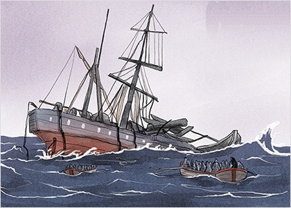 위급(危急) 상황(狀況): 선체(船體)가 급격(急激)히 파손(破損)되어 단(段) 20분(分) 만에 침몰(沈沒)할 위기(危機)에 처했고, 구명정(救命艇)은 턱없이 부족(不足)했습니다.