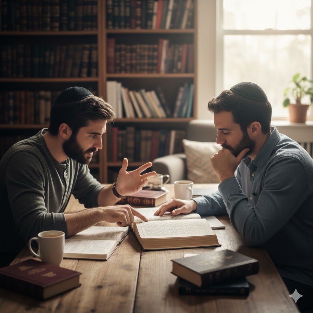 하브루타는 '짝' 또는 '친구(親舊)'를 뜻하는 히브리어(Hebrew語) '하베르(Chaver)'에서 유래(由來)한 용어(用語)입니다. 두 명(名)이 짝을 지어 서로 질문(質問)을 주고받고 논쟁(論爭)하며 진리(眞理)를 탐구(探求)하는 유대인(猶太人) 전통(傳統)의 대화(對話) 학습(學習)법을 의미(意味)합니다. 이는 단순(單純)한 지식(知識) 전달(傳達)을 넘어 사고(思考)의 확장(擴張)과 비판적(批判的) 성찰(省察)을 목표(目標)로 합니다.